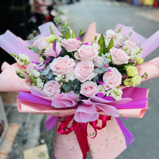 Bó hoa tone hồng nhạt mix các loại hoa
